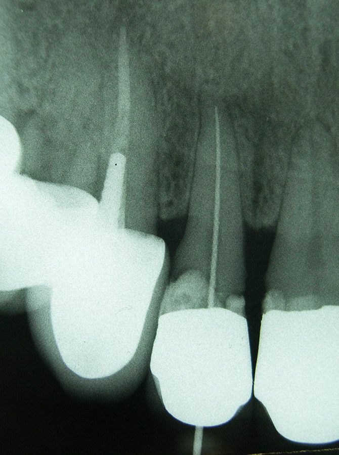 Entscheidend für den Langzeiterfolg einer Wurzelkanalbehandlung ist die exakte Füllung des gesamten Wurzelkanals bis zur Wurzelspitze. Daher verlassen wir uns hier nicht nur auf Röntgenbilder, sondern messen mit modernen Zusatzgeräten elektronisch die Länge jedes Wurzelkanals .Die Aufbereitung der Kanäle erfolgt teils von Hand, teils maschinell mit speziell dafür entwickelten, drehmomentbegrenzten Motoren und hochflexiblen Einmal-Feilen. Vor der endgültigen Wurzelfüllung wird bei uns jeder Wurzelkanal laser-sterilisiert, d.h. evtl. noch vorhandene Bakterien werden durch Zufuhr hochenergetischen Laserlichts über flexible Glasfasern abgetötet.