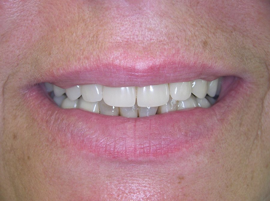 Ein besonderer positiver Effekt der Implantate ist, dass sie den Kieferknochen und das Zahnfleisch erhalten, während sich der Knochen unter Brücken und Prothesen hingegen abbaut. In vielen Fällen lässt sich so die natürliche Rot-Weiß-Ästhetik, also das harmonische Zusammenspiel von Zahnfleisch und Zähnen erhalten, so dass implantat-getragene Kronen kaum von eigenen gesunden Zähnen zu unterscheiden sind.